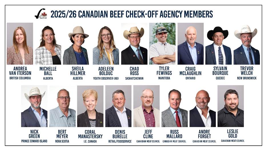 National check-off dollars are overseen by the Canadian Beef Check-Off Agency Board. Members are producers nominated by provincial cattle associations, joined by a small number of industry leaders with expertise in processing, retail, foodservice, and imports. Together, they bring regional experience and industry knowledge to one national table.